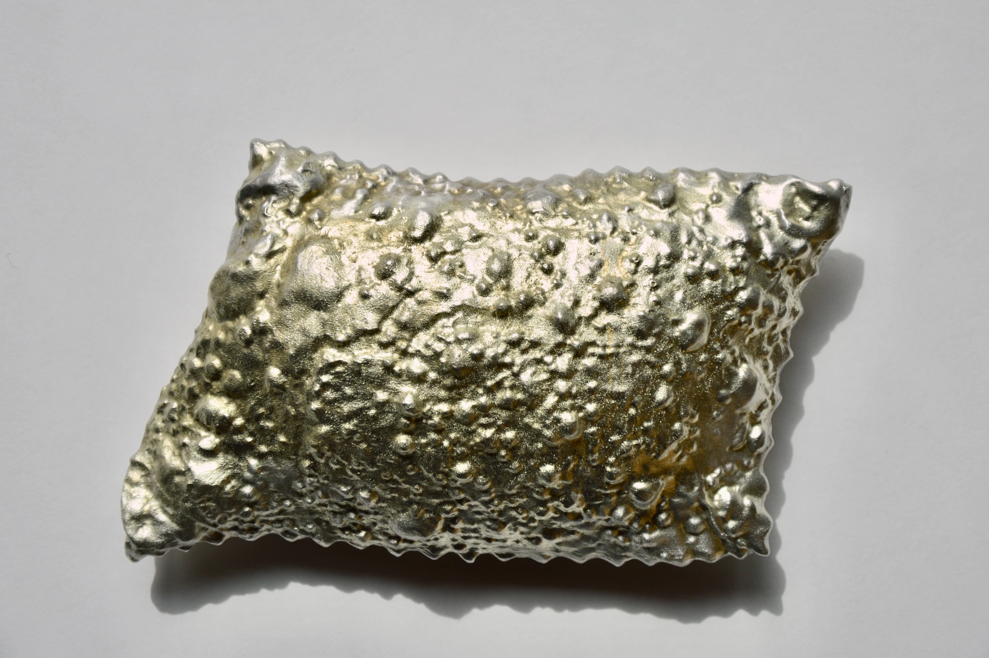 Kastelruther Krapfen (Edition), 2025-26, 13x07x3,5 cm, Zinnvollguss 1,1 kg, 23 KT Ölvergoldung